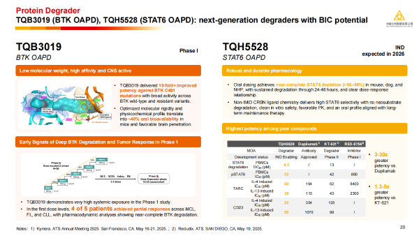 ·TQH5528 :临床前研究显示,即使在极低口服剂量下,关键组织中的STAT6近乎完全降解,有望成为下一代口服免疫疗法。